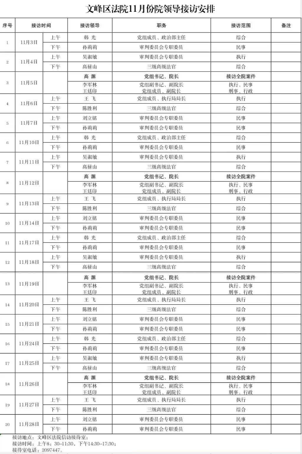 安阳市文峰区人民法院2025年11月领导接访公示
