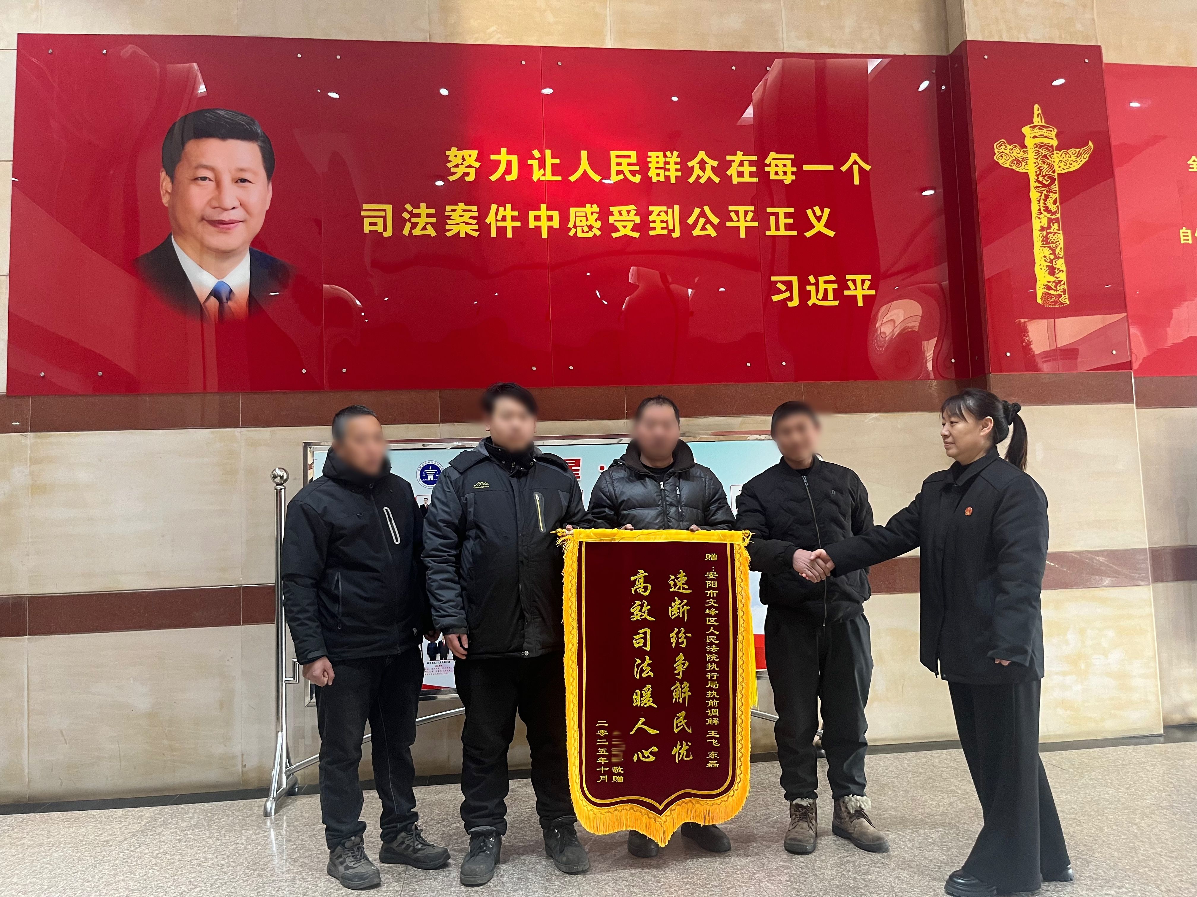 在线调解成功时,几位工友对着镜头连连点头,眼圈隐隐发红。几天后,他们专程送来锦旗,握住干警的手久久不放:“没想到,没跑一趟远门,钱真能拿到!”