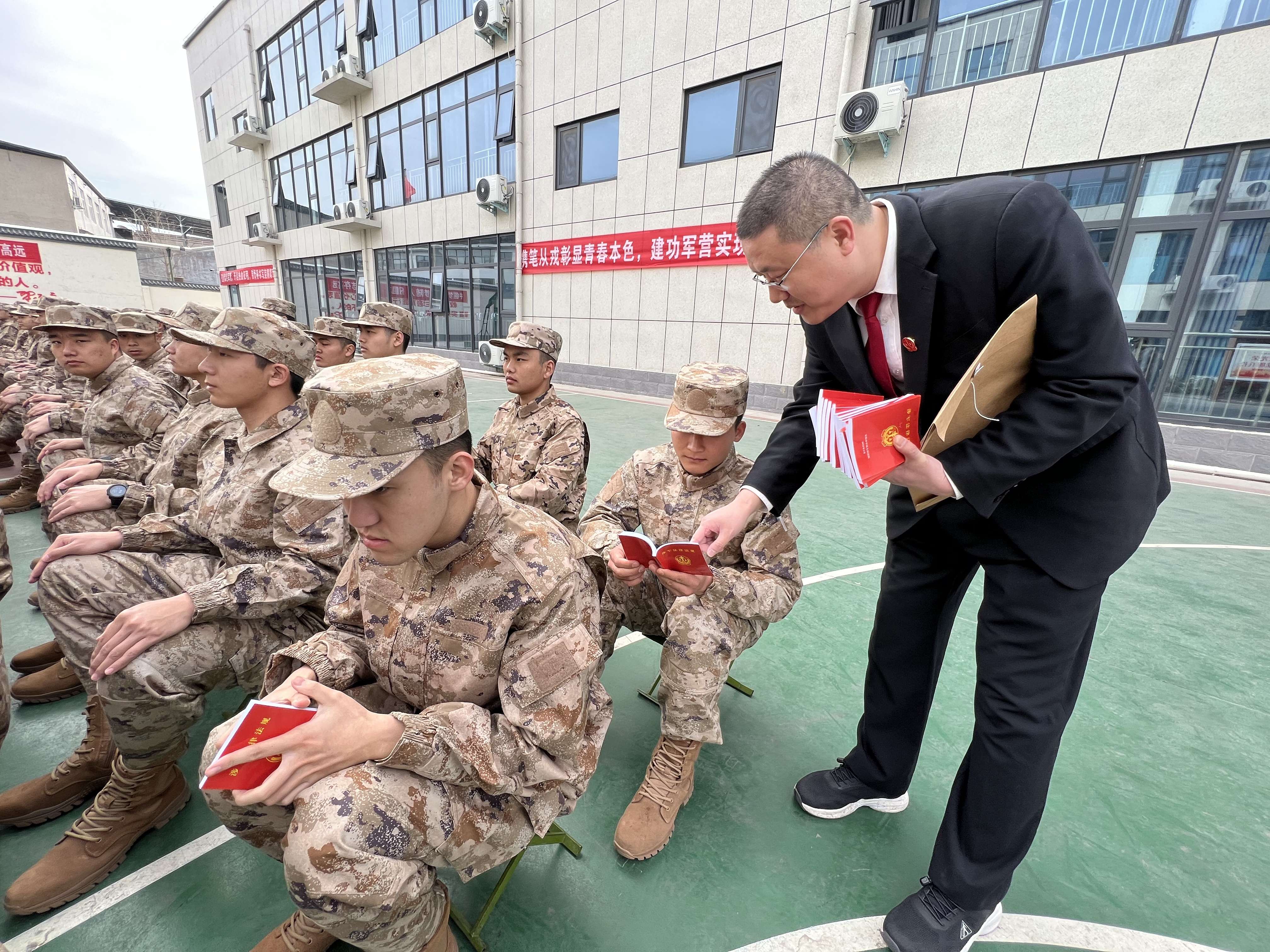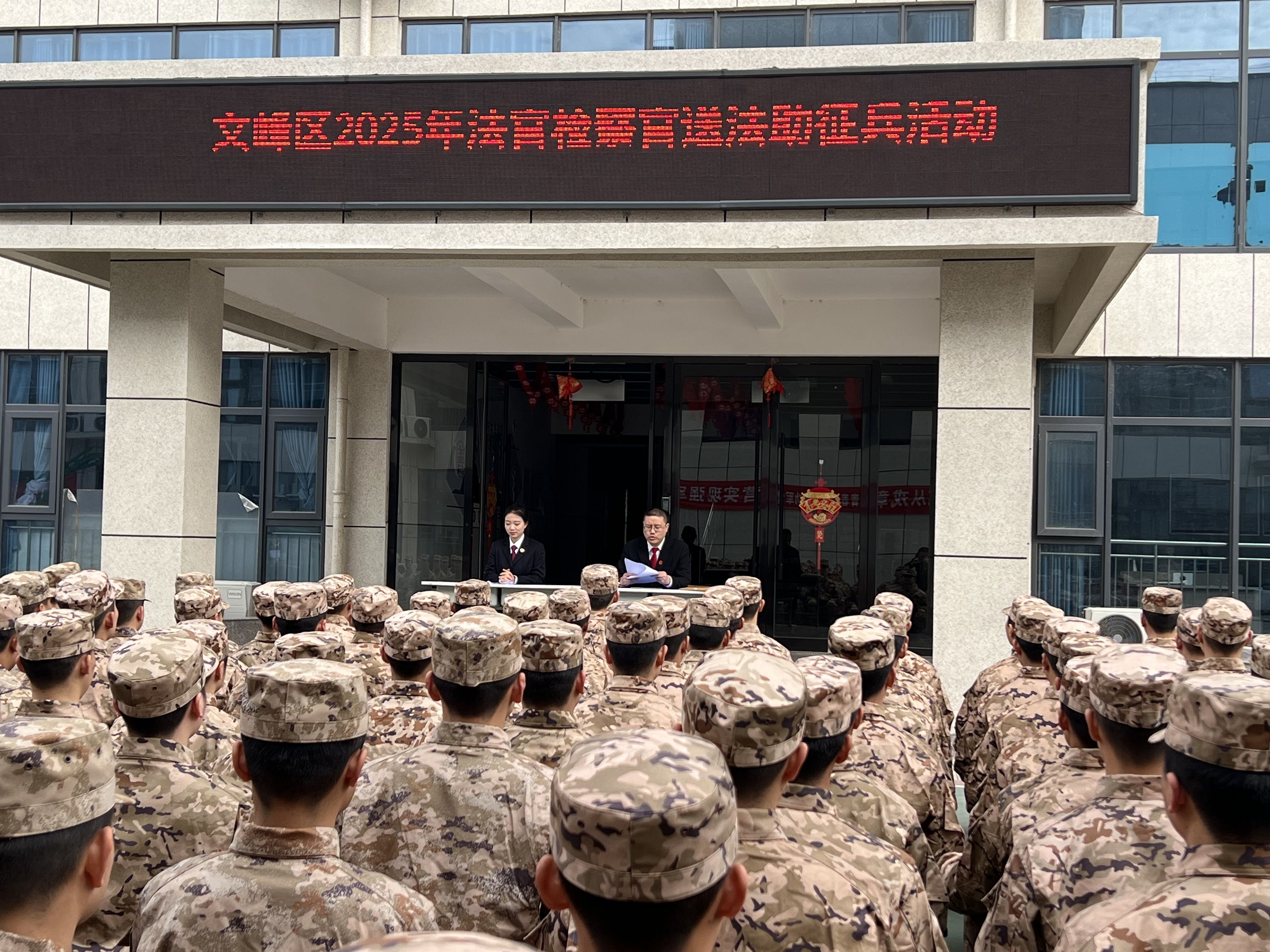 3月14日上午,民事审判庭员额法官王敬走进文峰区新兵训练基地,开展“送法助征兵”普法活动,为即将踏上军旅征程的百余名新兵送去一堂生动的役前法治教育课,助力他们系好军旅生涯的“第一粒法治纽扣”。